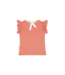 Zomerse t-shirt met ruffle mouwtjes en een strikje op de rug. Tof op een zomerse short of een kleurrrijk rokje.