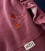 Soepele babylegging in een warme roze velours. Afgewerkt met frulletjes aan de taille.